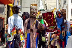 Sinopse: O cortejo será uma vivência rítmica guiada pelas tradições do Congo e da Congada. Com tambores, cantos e danças ancestrais, o grupo Congo do Embondeiro Queixada — formado por moradores de Perus e Anhanguera — transforma a rua em território sagrado e coletivo, reafirmando a força da cultura negra como instrumento de resistência, celebração e transformação social. Acompanhado pelo Bloco dos Bonecões gigantes criados por Paulo Farah, nascidos do encontro entre a cultura popular e a arte contemporânea, que ocupam o espaço público com força visual e presença cênica, despertando encantamento imediato. O cortejo também contará com a performance dos pernaltas Eduardo Guimarães, Elidy Moreira, Gleice Kelle, Jennifer Nascimento, Lstorm, Thalita Duarte e Valmir Santanna. Mais do que um desfile, o cortejo é uma vivência cultural viva e democrática, que valoriza a cultura popular e transforma o ambiente em um território de imaginação, afeto e convivência.